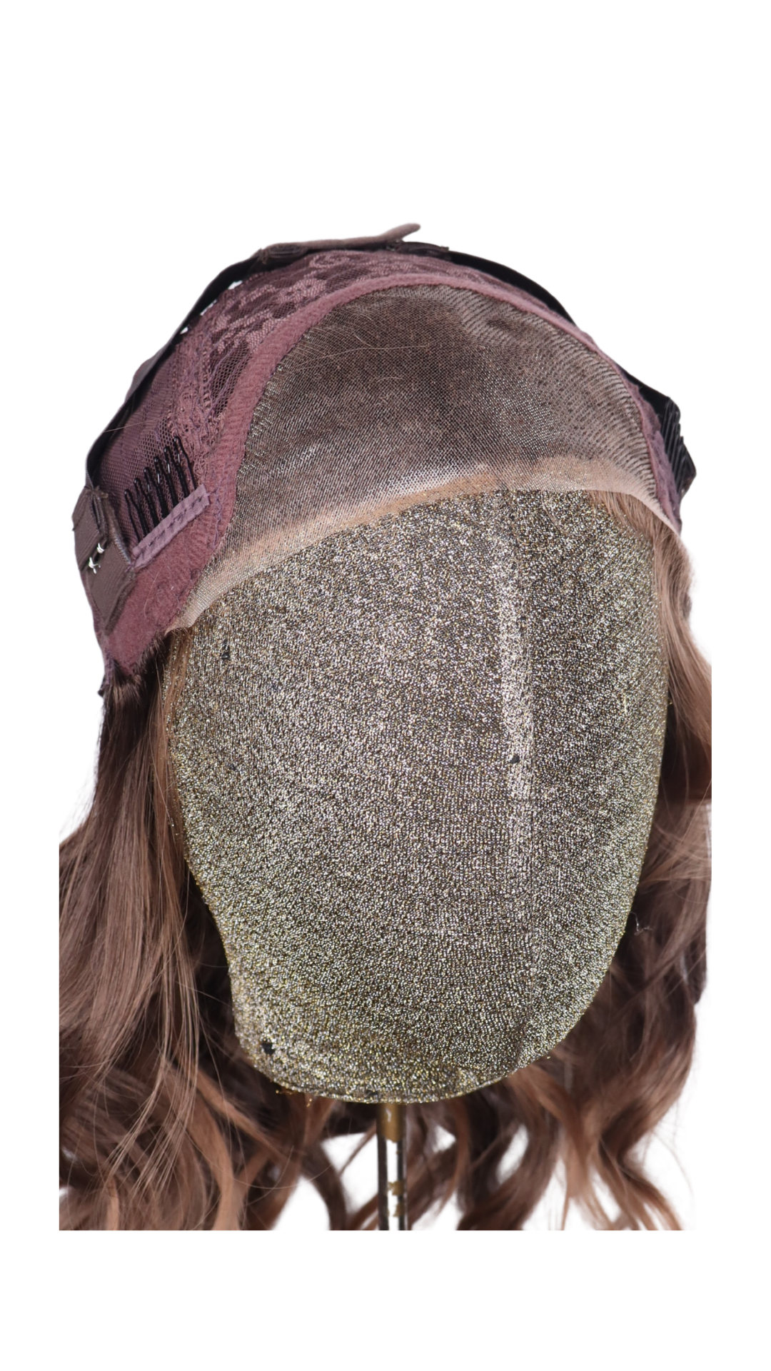 Brown sugar brunette with muted rosy peach blonde washed highlights