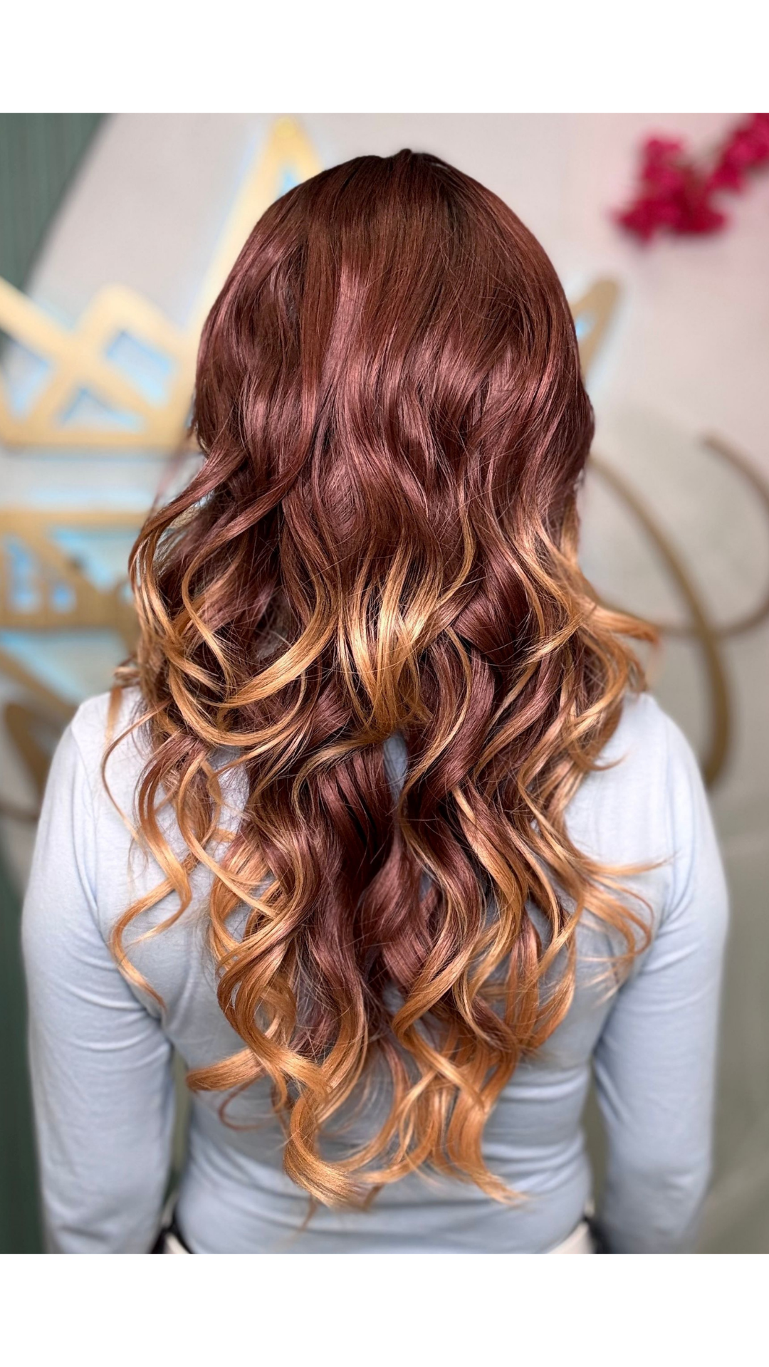 A cascade of copper and blonde makes Dani an absolute dream. Effortless curls and a long, but oh so wearable length.