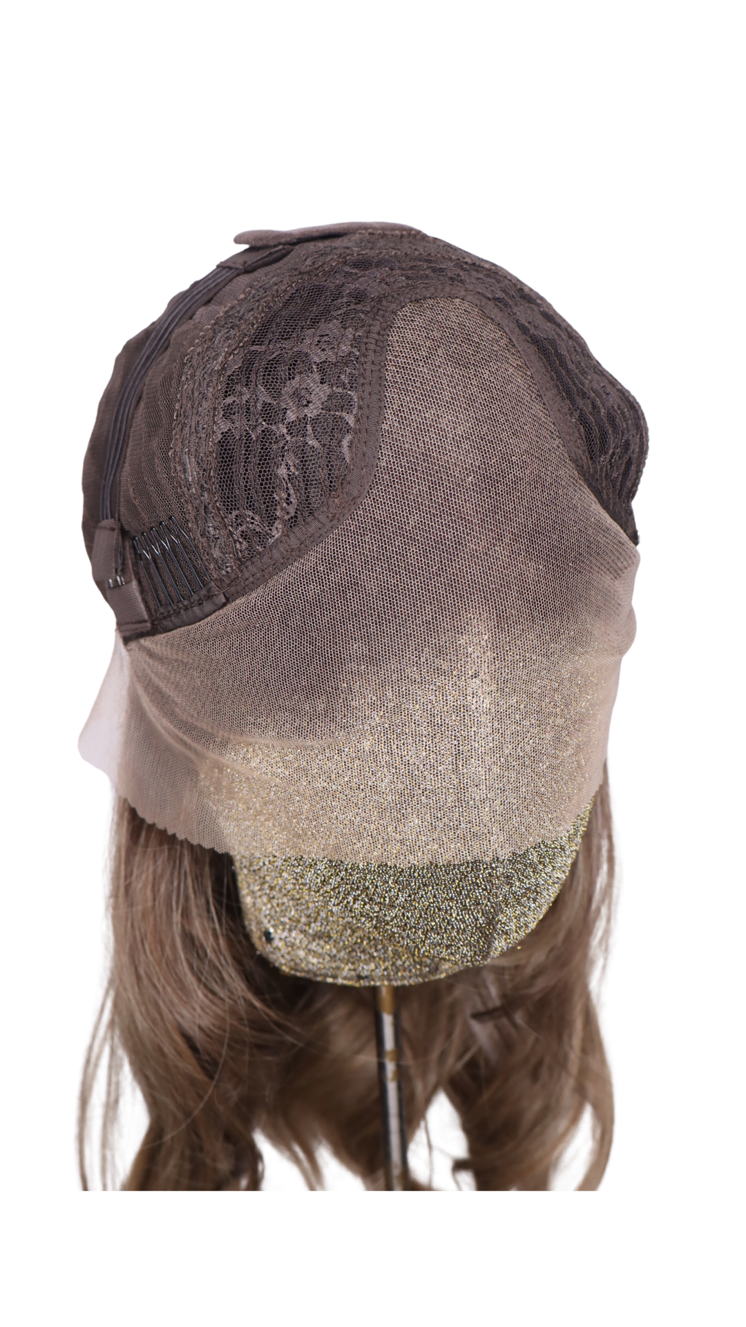 Light brunette with cool brunette lowlights and blonde highlights with Scandinavian hairline