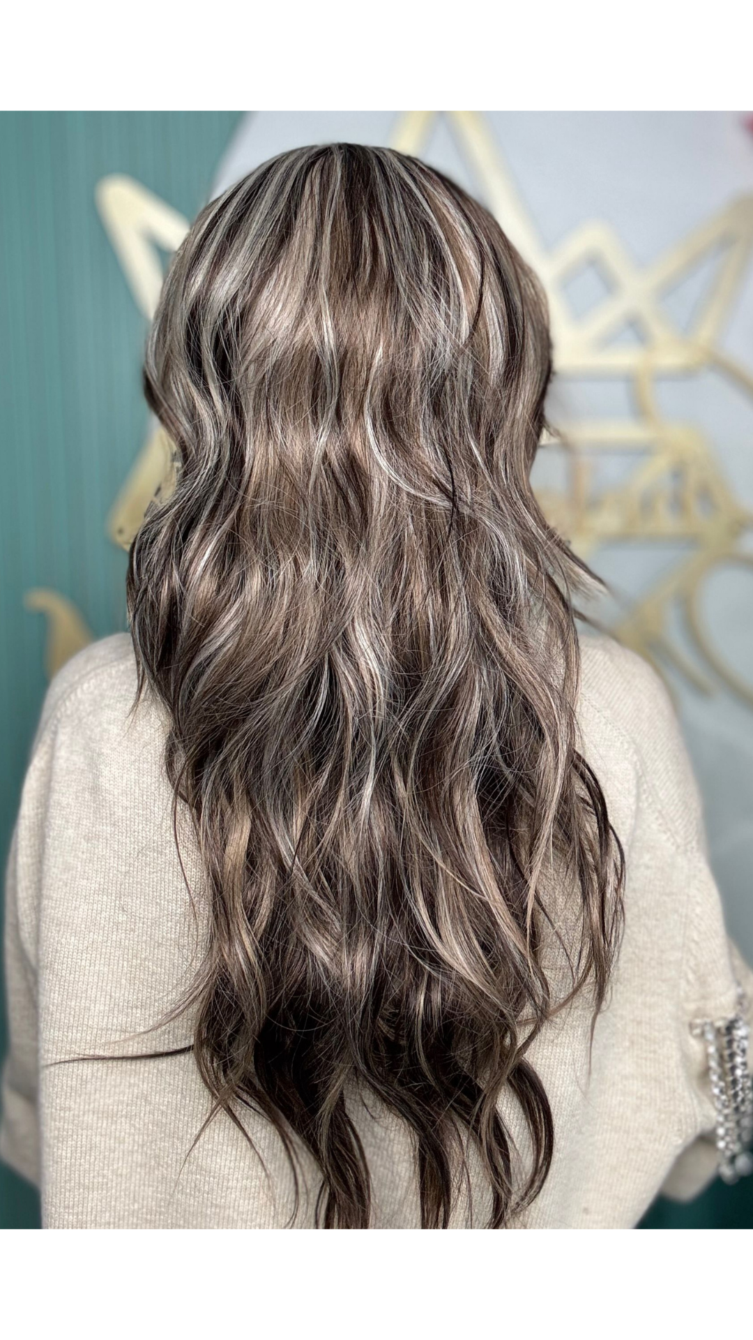 Cool toned brunette with caramel and vanilla highlights with a Scandinavian hairline