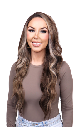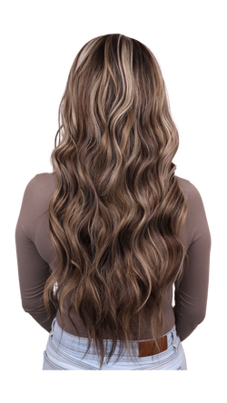 Cool brunette with caramel and blonde highlights